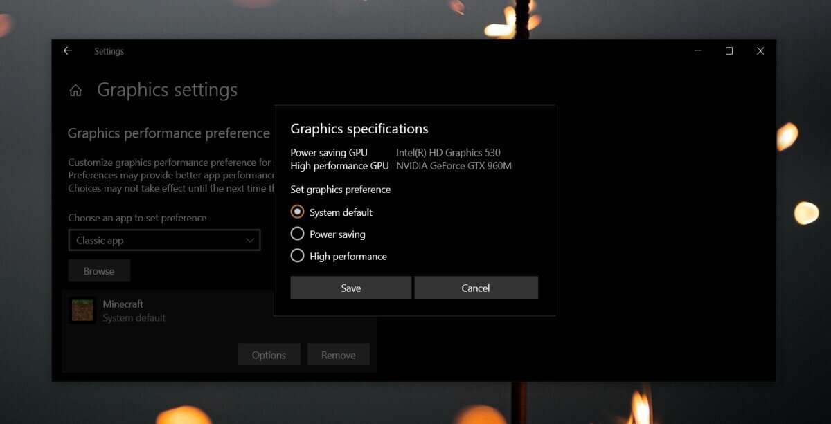 Windows 10 usually decides when an app will use integrated graphics and when it will use the GPU however, in some cases, an app demands that the GPU be used and the OS complies. If you think the app can run with the onboard graphics, you can force it run with the integrated graphics card instead.
