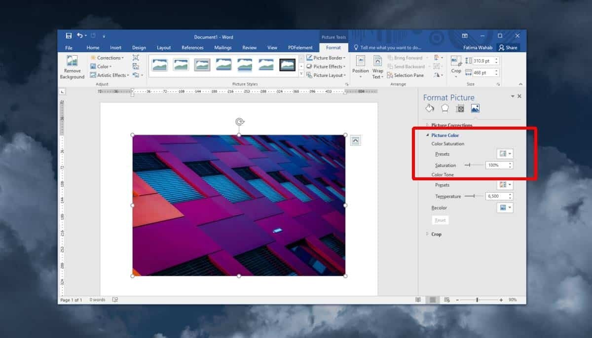 To convert an image to grayscale in any of the Microsoft Office suite apps, right-click it and select Format Picture from the context menu. This will open an image editing panel on the right. Go to the Picture tab (the very last one). Expand the Picture Color options, and click the little dropdown next to the Presets for Color Saturation.