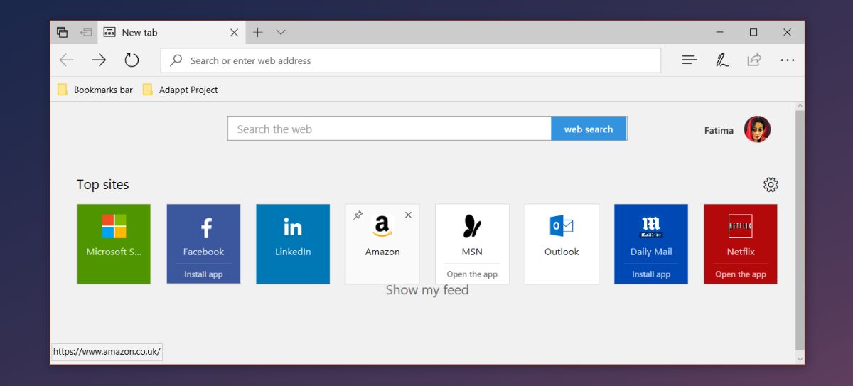 Open Microsoft Edge. If you’ve set the new tab page to show you your news feed, change it first to show Top Sites. Next, of the eight top sites shown, pick which one is the most useless. It’s fine if you hate them all.