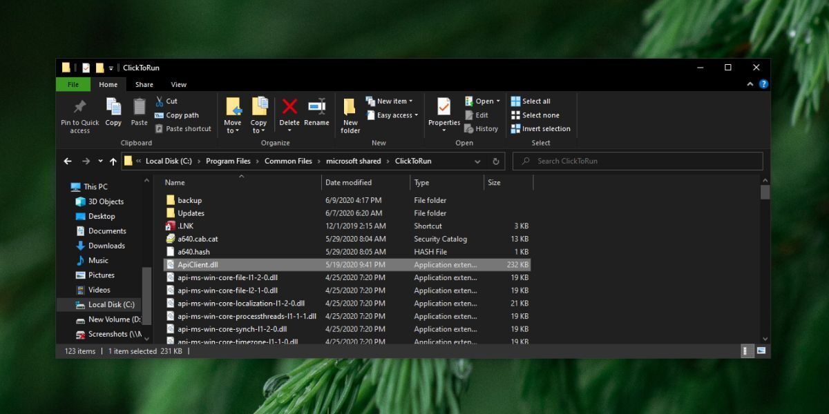 regsvr32 /u "C:\Program Files\Common Files\microsoft shared\ClickToRun\ApiClient.dll"