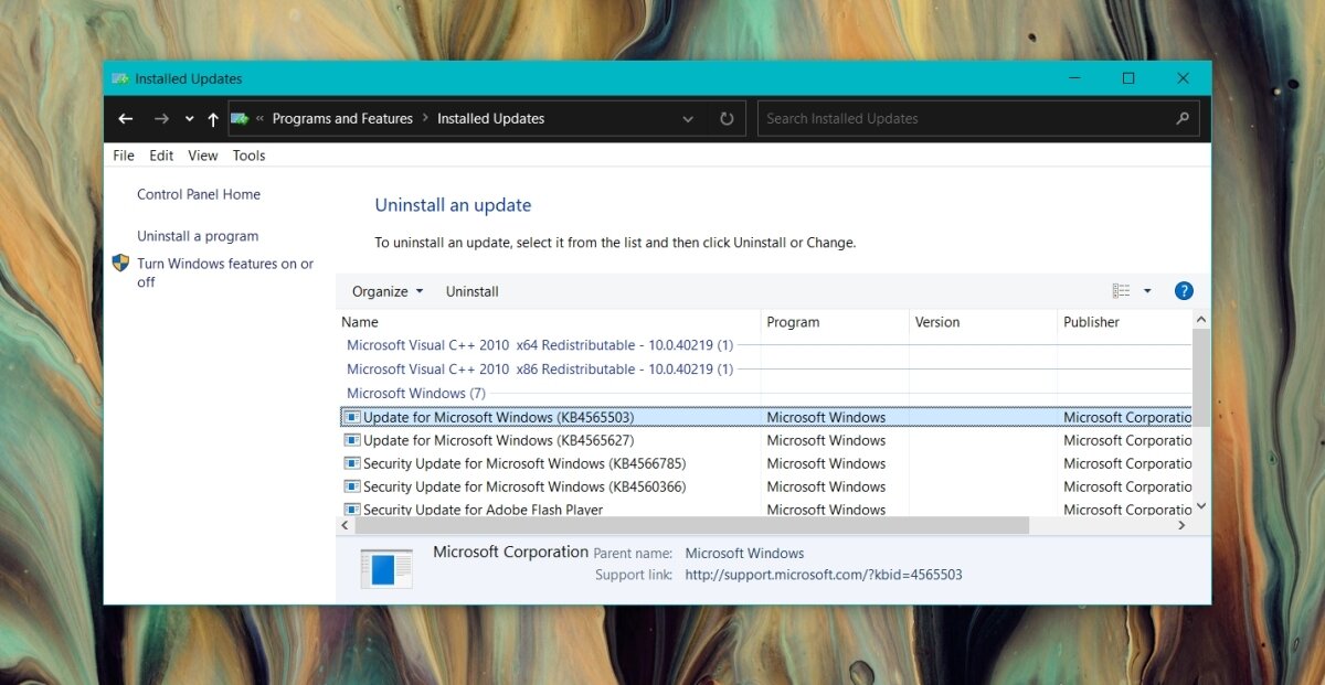 - Select an update, and click Uninstall at the top.