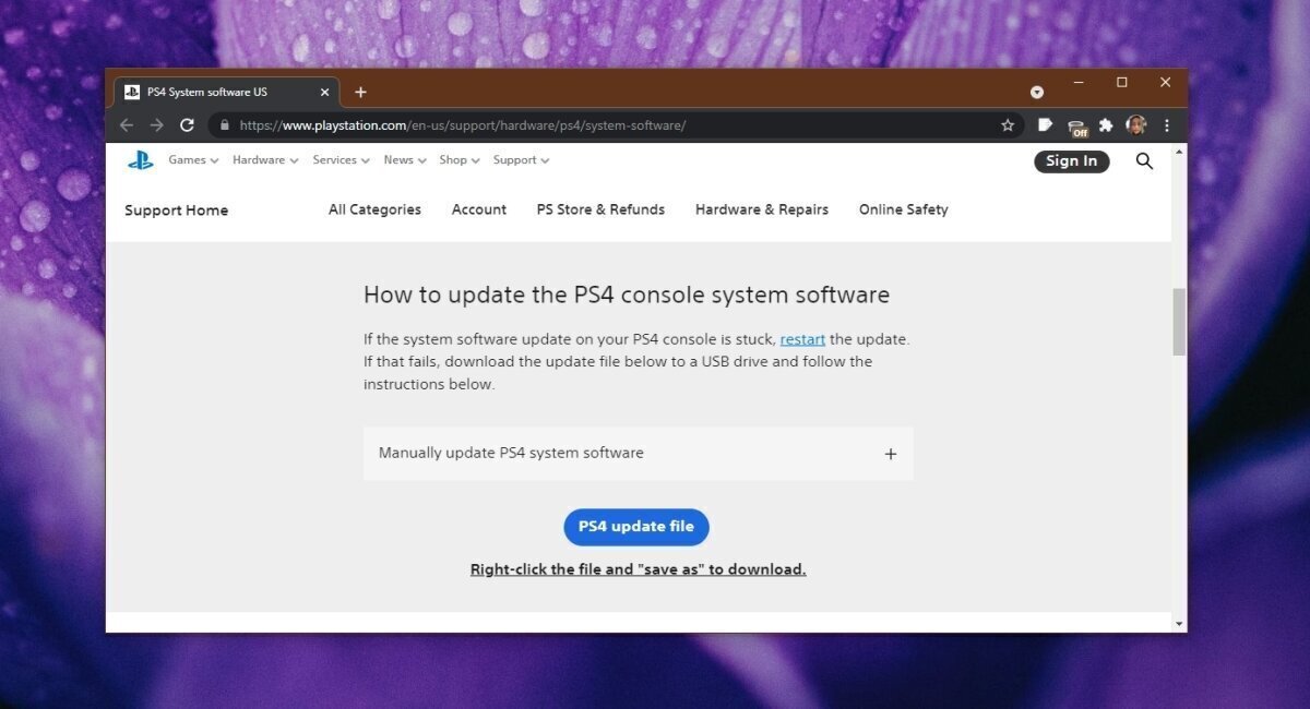 - On your computer, visit the PS4 firmware update page in a browser.