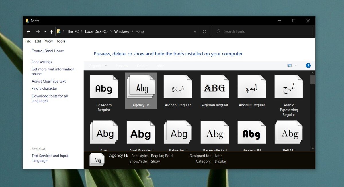 Font files aren’t all the same format. There are three popular font formats that are used; OpenType, TrueType, and Web Open Font Format. All three are supported on Windows 10. If your font is a different type of font, or you’ve used an online tool to convert a font to one of the supported types, it is highly likely that it won’t be detected. You will have to use a different font.