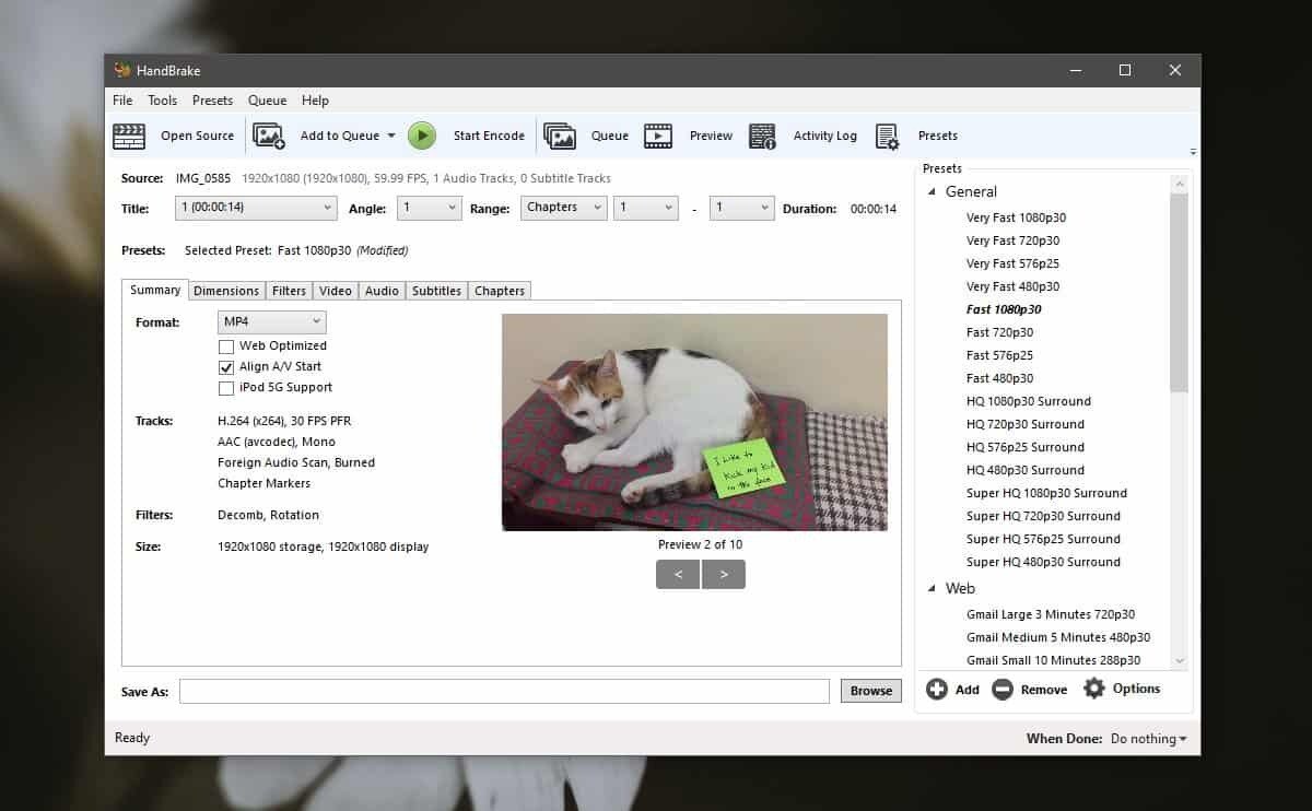 Editing a video is easy if all you want to do is trim it a bit, or extract a frame from it. For other more complicated edits such as cropping a video, or even flipping it, your average video editor won’t do the job. Fortunately, there’s Handbrake. It’s feature rich, it’s free, and if you need to flip a video, it’s more than up to the job.