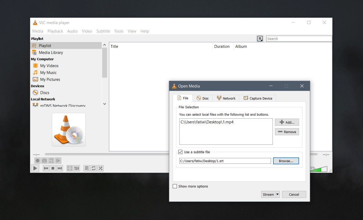 - Allow VLC player to add subs and a new file with the name you specified will be created.