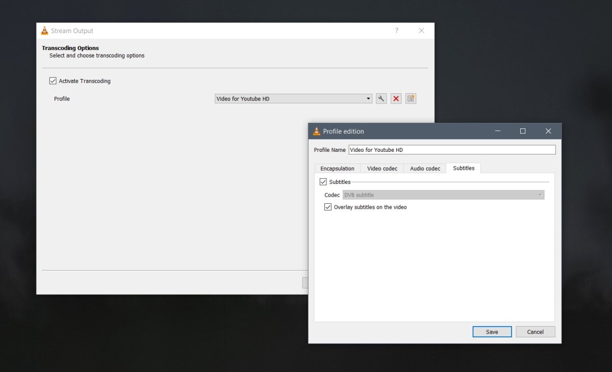 VLC player will always create a new file when it hardcodes subtitles so you don’t have to worry about losing the original, subtitle-free file. You can save the output file in MP4, WEBM, MKV, and other formats. The subtitles, because they’re hardcoded, will appear in any and all media players that can play the file type. If you upload the video online, the subtitles will appear in the online file as well.