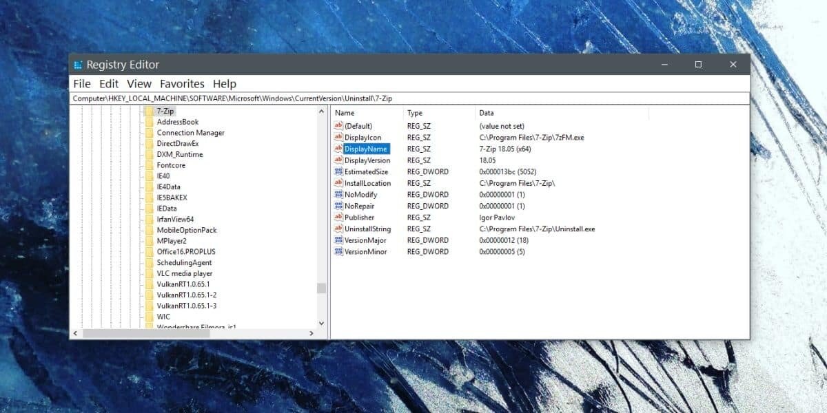 To hide apps from the uninstall list you see in the Settings app and the Control Panel app via the registry, open it and navigate to the following location.
