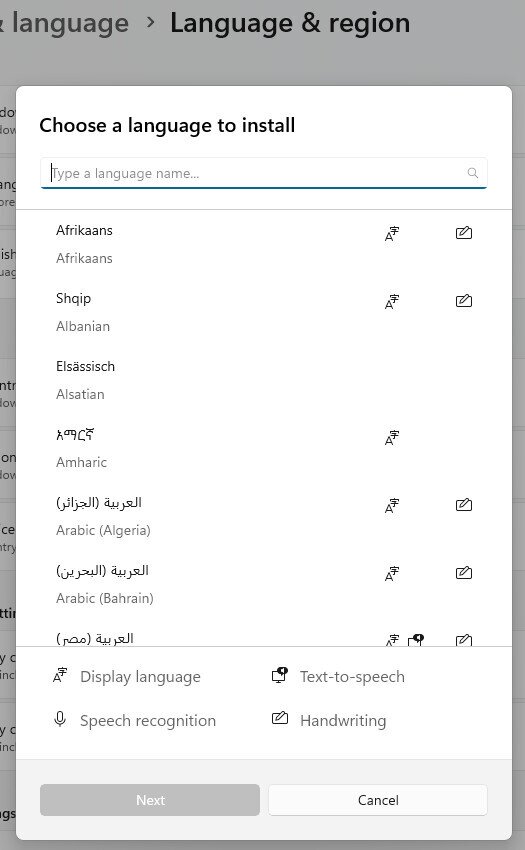 - While still in the Language window, look under “Preferred language” to find the “Add a language” option. Click it, and a “Choose a language to install” window will pop up.