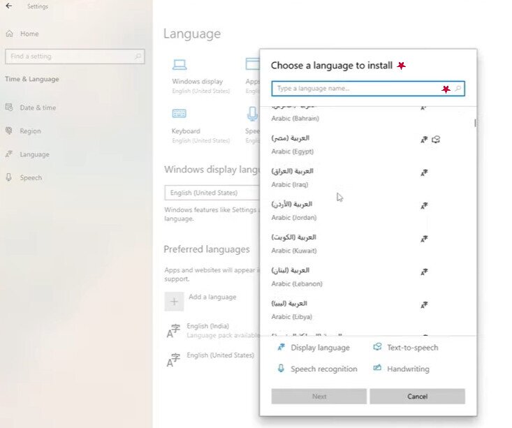 - If it’s not there, you can install a language pack. Be sure your computer is connected to the internet and save/close any apps or other unnecessary programs running.