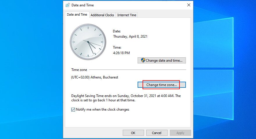 How to change the time zone on Windows 10
