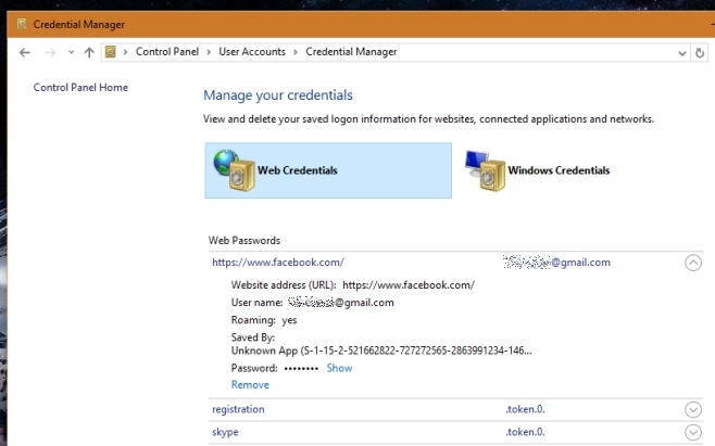 If you ever let Edge save your Facebook credentials then simply removing them from Edge will ensure they are removed from Windows 10 but the same can’t be said for other apps which, as seen above, Windows 10 fails to identify at times. It’s unlikely that Edge or even the Facebook app are the culprits so the only thing that can be done is to be selective with apps that we sign into Facebook with.