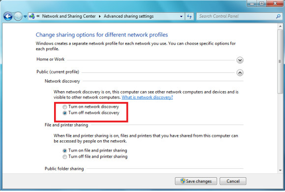 Here locate the Turn off network discovery option and check it, that’s it, now your computer will not be visible over the network.