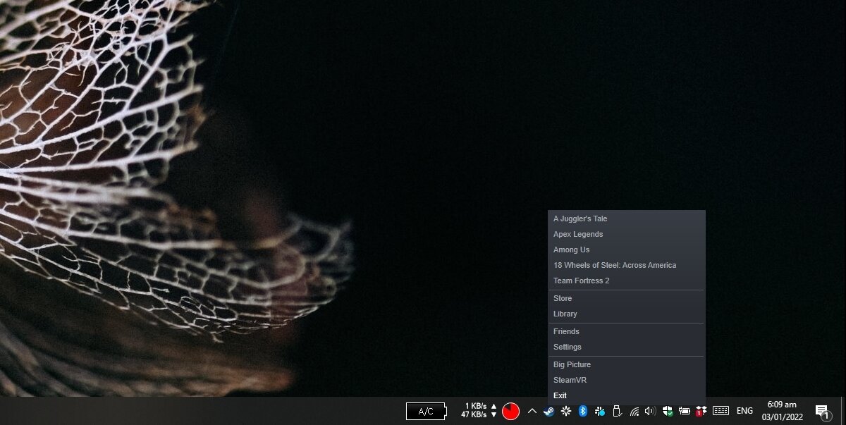 - Right-click Steam in the system tray.