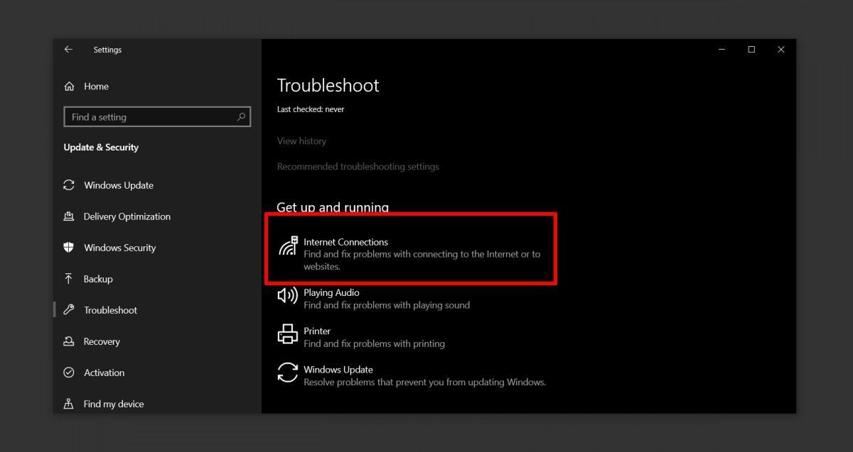 - Select and run the Internet Connections troubleshooter. It might be able to force Windows 10 to show available networks.