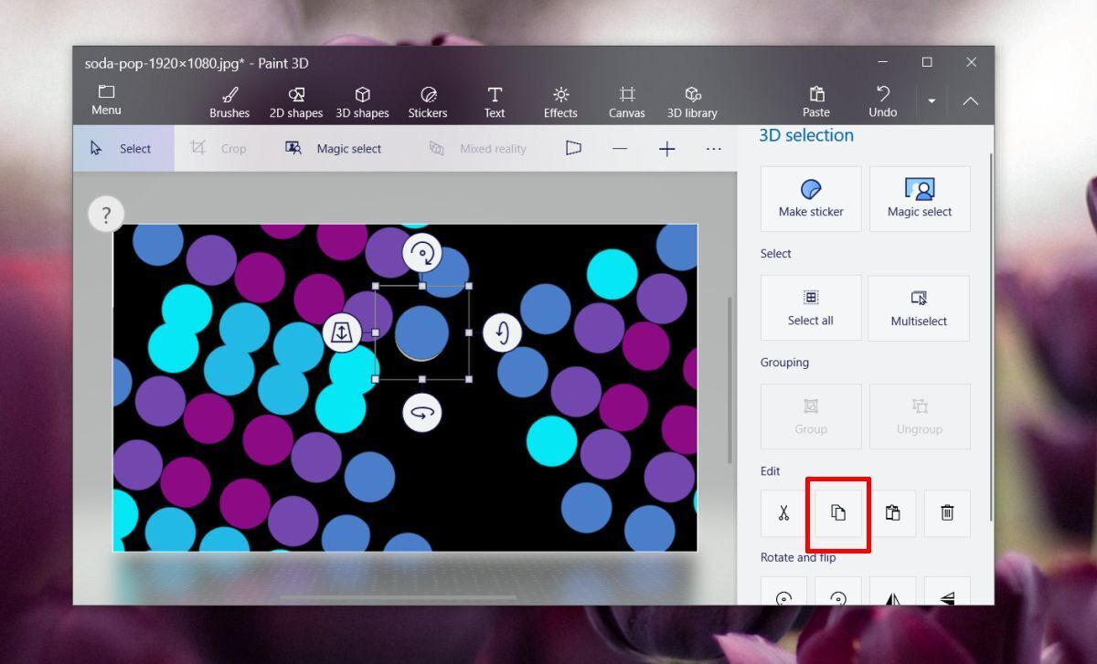 Click the ‘Select’ tool and create an outline around the object that you want to include in the image. Everything outside it will be deleted. Paint 3D doesn’t have a free-form selection tool. Instead, it has a tool called ‘Magic select’. Click it. It will automatically remove content around the object that it thinks you don’t want to include. You can choose to accept or reject this selection.