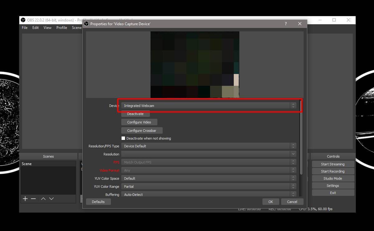 In the menu that opens, click the Video capture device option. Give the source a name but don’t change anything else on the first screen that you see. When you see the following screen, open the Device dropdown. Select the name of the app that you want to use i.e., Select either Chromacam or XSplit VCam.
