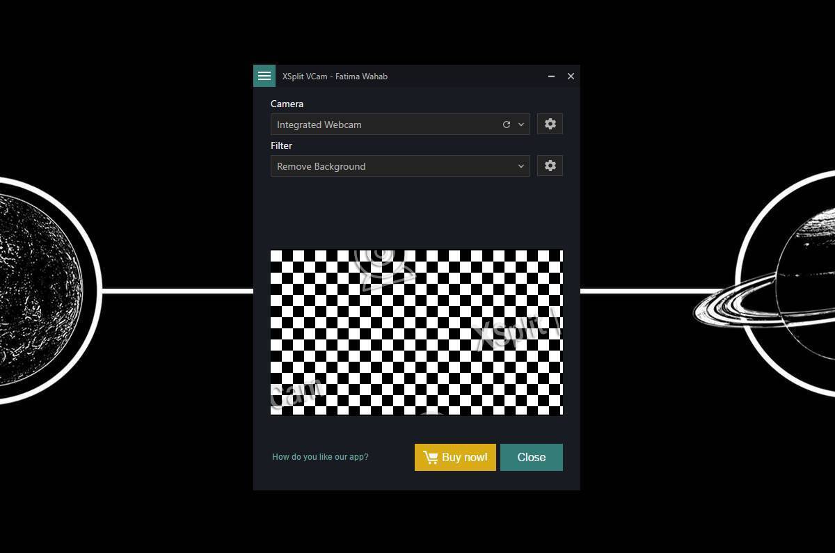 For XSplit you will see the following window after the app runs its first set up. From the Filter dropdown, select Remove Background.
