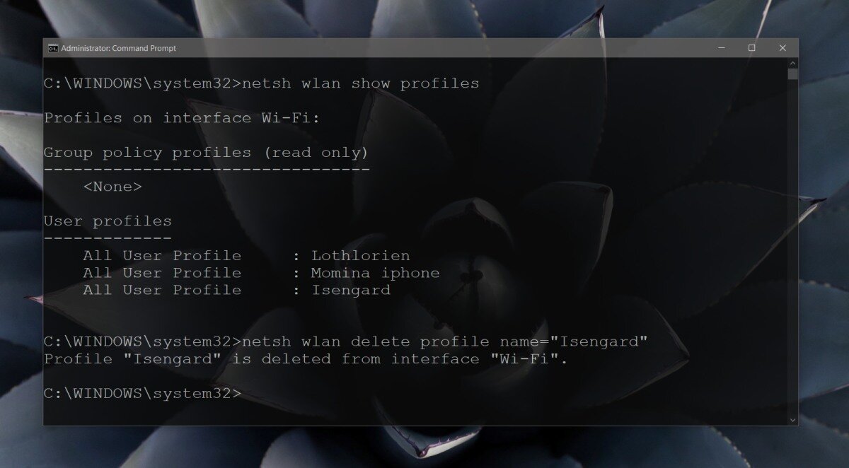 The Command Prompt, like PowerShell, can also be used to forget a WiFi network. The commands are the same.