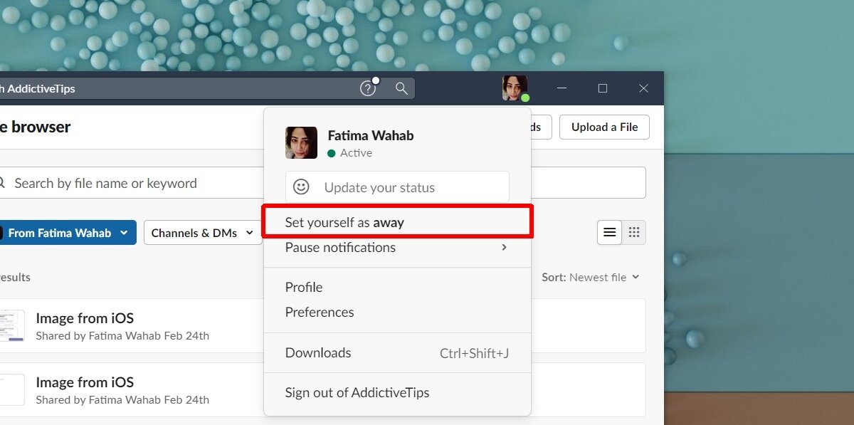 You can set your Slack status to busy and you can snooze your notifications if you’re away but Slack has better, information rich options that you can use to set as your status. For example, if you’re in a meeting, you can set the status to say so, and set the status to expire automatically.