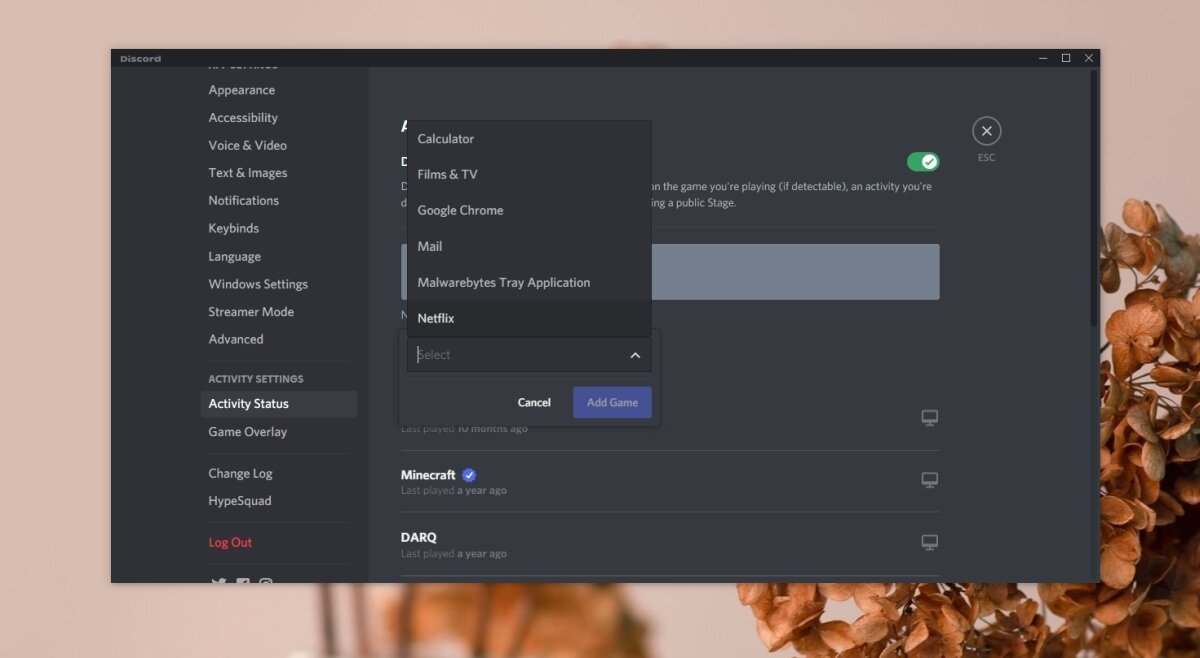 Discord is used for all types of communication but its users are most often people who game or who like to watch live game streams. As such, Discord has a built-in option to stream gameplay directly from the app. You do not need to rely on any third-party tools to do the job.