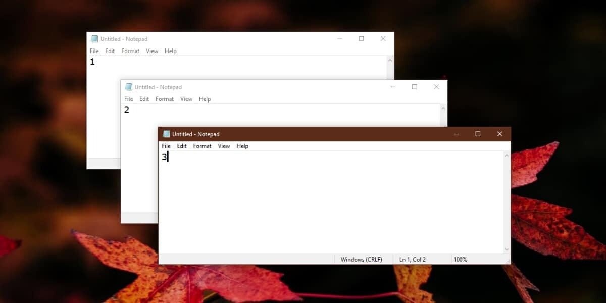 This will work for windows of the same app. Let’s say you have three Notepad files open on your desktop as shown below. You minimize each one, one by one. So, going with the example and the screenshot below, you will minimize the Notepad file with ‘3’ in it first, then the one with ‘2’, and then the one with ‘1’. This means the last active window will be the Notepad file with ‘1’ in it.