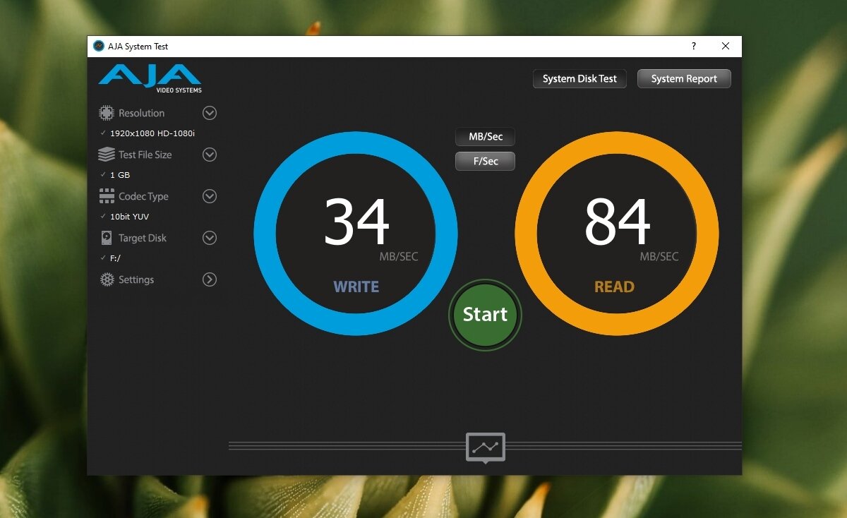 To check the speed of an SD card, you need an app. We recommend using AJA System Test.