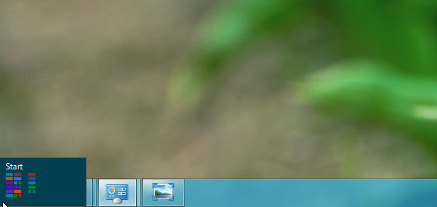 One thing which you will immediately notice when you open Windows 8 desktop is that there is no Windows Start Orb. When you hover mouse pointer over the bottom-left corner of the screen, it shows the thumbnail preview of Start Screen. Clicking this thumbnail takes you directly to Windows 8 Start Screen, allowing you to launch Metro apps and pinned applications, and Windows Explorer shortcuts.
