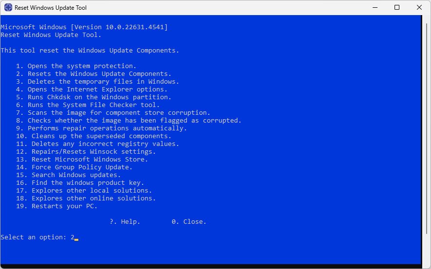 5. Type 2 and then press Enter. This will reset various Windows Update components.