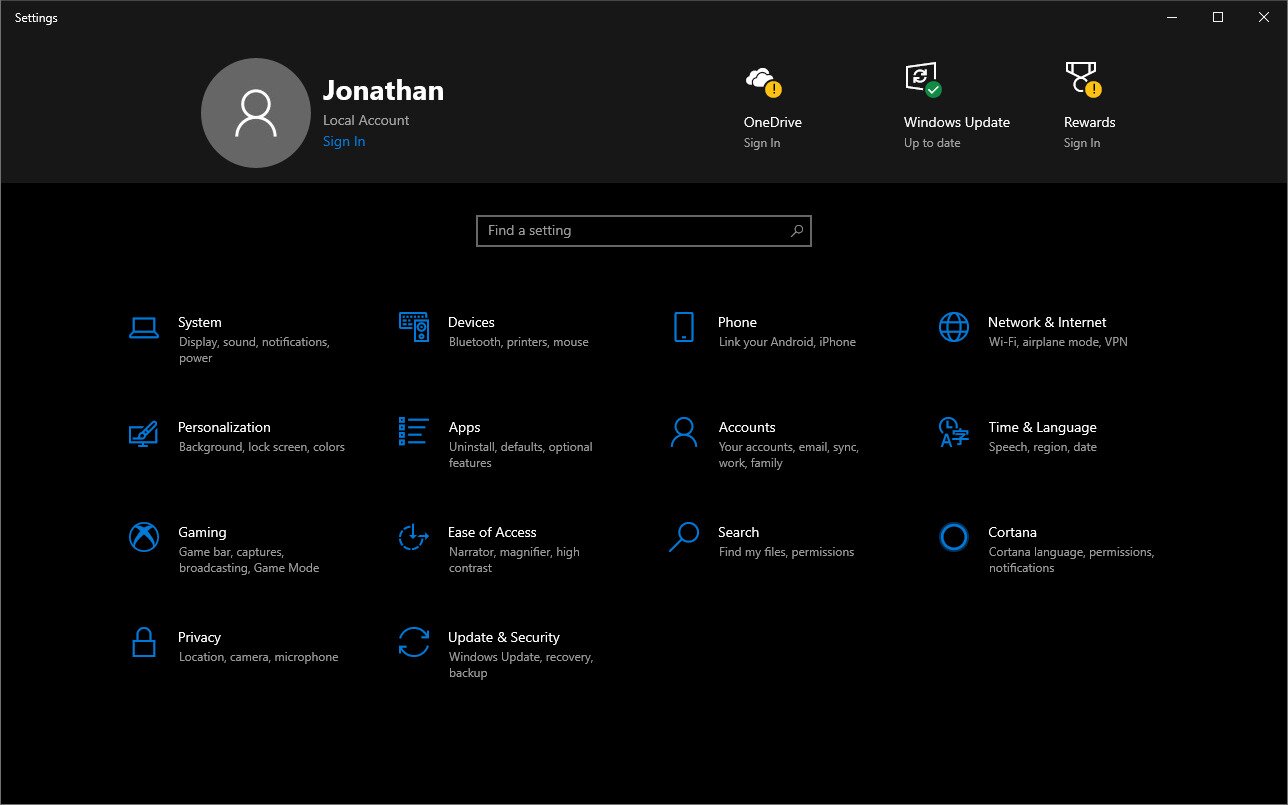 1. Open Settings. You can search for it or trigger it via the Win+i shortcut.